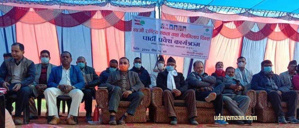 नेपाली कांग्रेस जिल्ला कार्य समिति पश्चिम् नवलपरासीले “४५औं राष्ट्रियता एकता तथा मेलमिलाप दिवस” भव्यताका साथ मनाएको छ । नेपाली काङ्ग्रेसका केन्द्रीय सदस्य एवं पूर्व गृहराज्यमन्त्री देवेन्द्रराज कंडेलको प्रमुख आथित्य एवम् जिल्ला सभापति बिष्णु पौडेलको सभापतित्वमा सम्पन्न उक्त सभामा नेकपा नवलपरासीका जिल्ला सदस्य दिपेन्द्र यादव र मजमुल्लाह चुरिहार सहित अन्य राजनैतिक दलबाट समेत गरि ४५० जना बढी नेपाली काँग्रेसमा प्रवेश गरेका छन ।