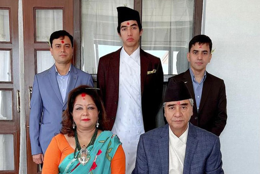 त्यस अवसरमा प्रधानमन्त्री देउवाले प्रथम महिला डा.आरजु देउवा र छोरा जयवीर देउवालाई दशैँको टीका लगाइदिए । प्रधानमन्त्रीको निजी सचिवालयका अनुसार कोभिड-१९ महामारीको जोखिम कायमै रहेकाले स्वास्थ्य मापदण्ड अपनाएर प्रधानमन्त्री देउवाले सीमित रुपमा परिवार, आफन्तजन तथा प्रधानमन्त्रीको सचिवालय र सुरक्षामा खटिने सुरक्षाकर्मीहरुलाई टीका लगाइदिएका थिए ।