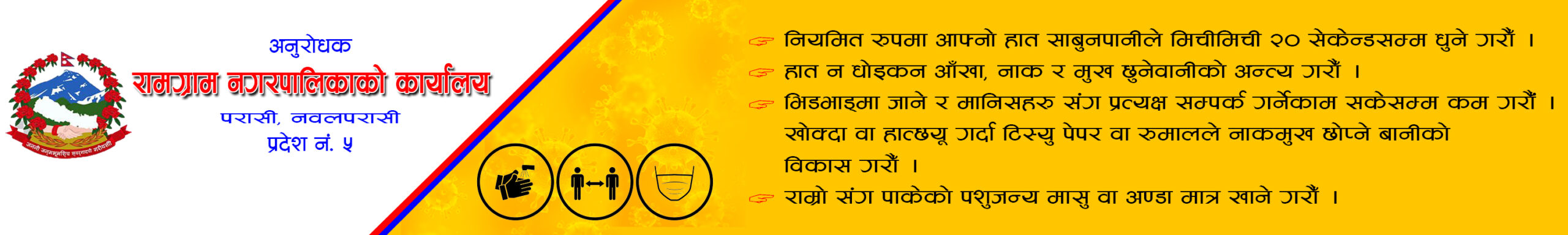 पश्चिम नवलपरासीको रामग्राम नगरपालिकाद्वारा आयोजित अन्तरक्रिया कार्यक्रमको अध्यक्षता कार्यालय प्रमुख रुद्र प्रशाद रेग्मी तथा प्रमुख आतिथ्यता नगर प्रमुख नरेन्द्र कुमार गुप्ताले गर्नुभएको थियो ।