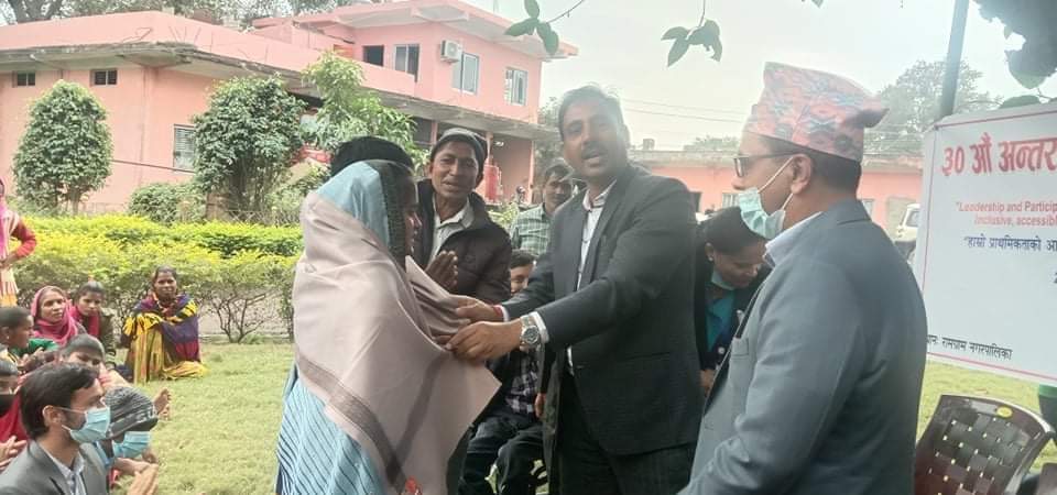 ज्ञानेश्वर सहानी,१७ मंसिर। ३०औं अन्तराष्ट्रिय अपाङ्गता दिवसको अवसरमा आयोजित एक कार्यक्रममा अपांगता भएका बालबालिकाहरूलाई सम्मान कार्यक्रम सम्पन्न गरिएको छ । ‘हाम्रो प्राथमिकताको आधार, अपाङ्गता भएका व्यक्तिहरूको अधिकार’ भन्ने मुल नाराका साथ दिवस मनाएको हो ।