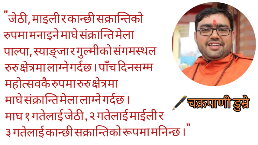 चक्रपाणी डुम्रे (शास्त्री) ।  ज्योतिषीय दृष्टिकोणमा माघ महिनाको १ गते अर्थात् सूर्य धनु राशिबाट मकर राशिमा प्रवेश गर्ने दिन हुदा यो दिनलाई माघे संक्रान्ति वा मकर संक्रान्ति भनिएको हो । सूर्यको उदयबिन्दु दक्षिणतर्फबाट उत्तरतर्फ सर्ने  भएकाले यस दिनबाट उत्तरायण सुरू हुन्छ । यस पर्वलाई थारु समुदायले माघी भनेर मनाउँछन् र नयाँ वर्ष पनि मान्ने गर्छन्, नेपालको समस्त भूभाग, हिमाल, पहाड र तराईका बसोबास गर्ने बाहुन, क्षेत्री, राई,मगर , लिम्बु, नेवार, गुरुङ, मगर र थारू आदि सबै जनजातीले माघे सङ्क्रान्तिलाई आआफ्ना परम्परा र भिन्न भिन्न विशेषता अनुसार मनाउने गरेको पाइन्छ ।
