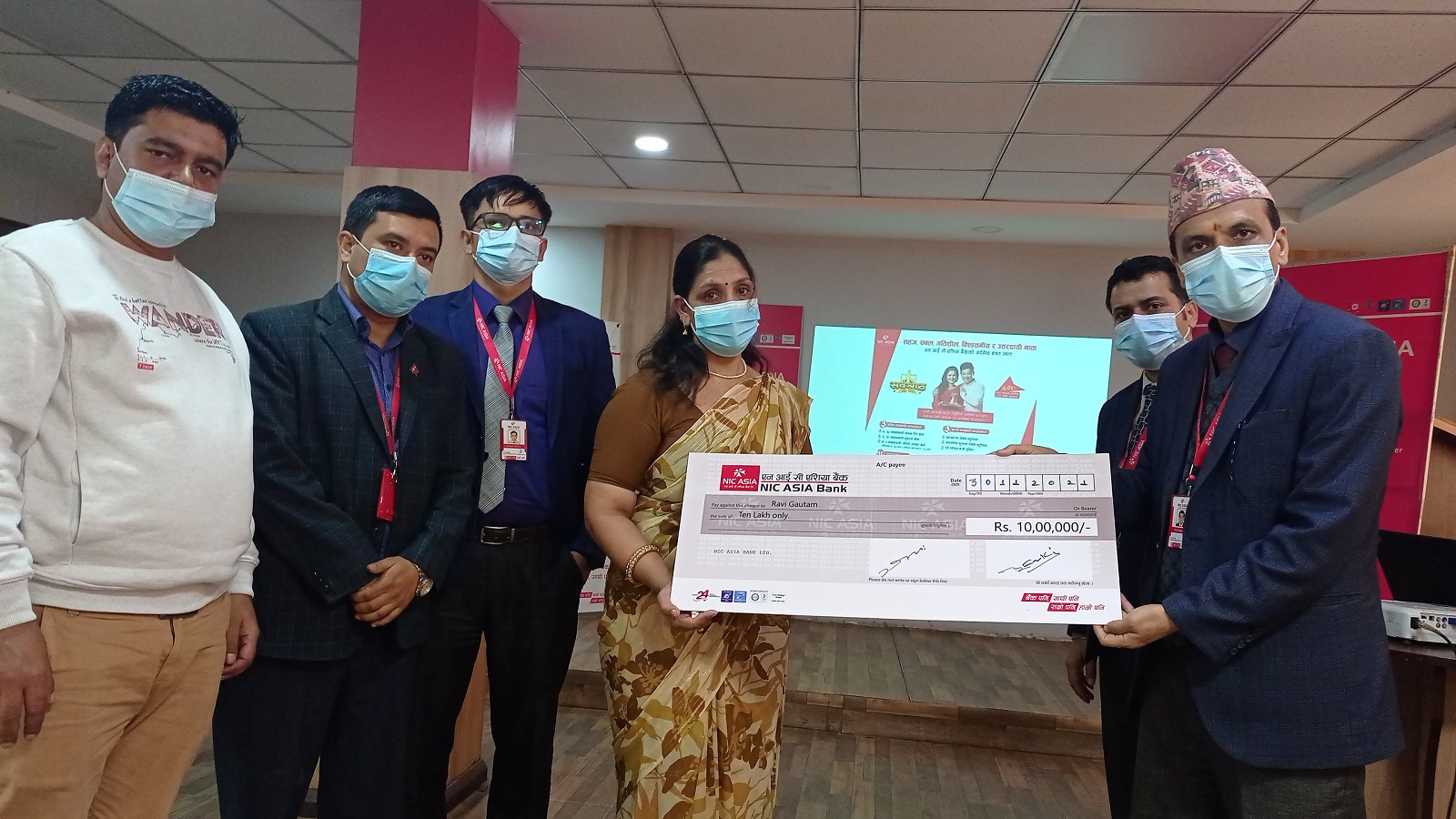 न्यु सुपर चमत्कारिक बचत खाता अन्तर्गत चौराहा हस्पिटल बुटवलमा शुन्य मौजदातमा कर्मचारी तलव बचत खाता खोलेका रवि गौतमको दुर्घटनामा निधन भएपछि बीमा बापतको रकम उनकी श्रीमती रामग्राम–३ नवलपरासी निबासी मिनालाई हस्तान्तरण गरिएको हो । एनआईसी एशिया बैंक लुम्बिनी प्रदेश कार्यालयका प्रमुख तिलकसुन्दर कार्कीले बीमा बापतको १० लाख रुपैयाँको चेक एक समारोहका बीच प्रदान गरेका हुन् । चेक हस्तान्तरण गर्दै कार्कीले आम सर्वसाधारणले आर्थिक भार वहन गर्न सघाउ पुर्याउने हेतुले बैंकले विभिन्न निक्षेप खाताहरु खोल्दा नै दुर्घटना बीमा लगायत विभिन्न घातक रोगहरुको बीमा सुविधा प्रदान गर्दै आएको बताए ।