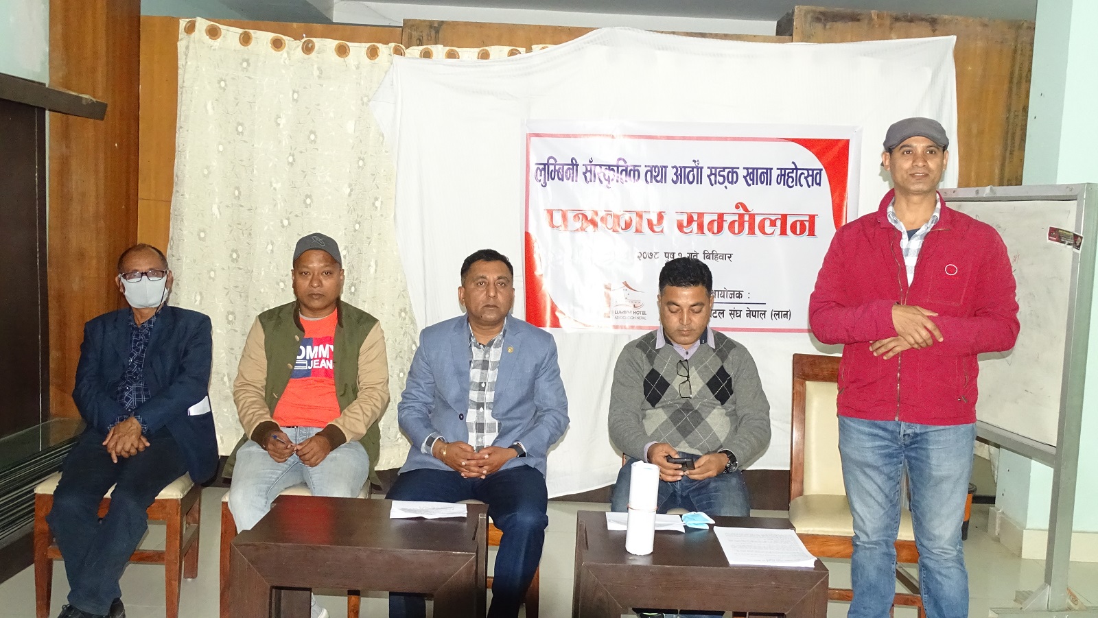 भैरहवा, २ पुस।  अंग्रेजी नयाँ वर्षको अवसरमा लुम्बिनी सांस्कृतिक तथा आठौँ सडक खाना महोत्सव हुने भएको छ । ‘लुम्बिनी सुरक्षित छ, कोभिडले डारउनु पर्ने अवस्था छैन’ भन्ने सन्देश दिदै लुम्बिनी होटल संघले १६ र १७ पुसमा नयाँ वर्ष २०२२ अवसर पारेर सडक खाना महोत्सव गर्न लागेको हो ।