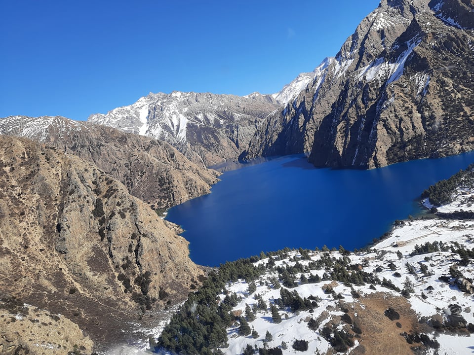 मौसम खुलेसँगै हिउँमय पहाडको बीचमा यस्तो देखियो शे फोक्सुण्डो ताल