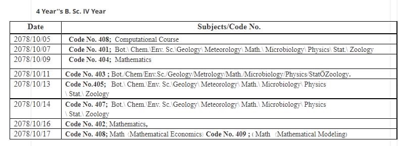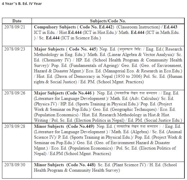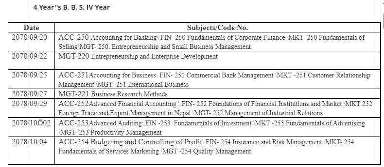 त्रिविको चौथो बर्षको BBS/BSC/BED परिक्षा तालिका सार्वजनिक (हेर्नुहोस्)