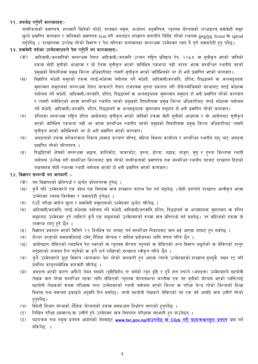 काठमाडाैं, ७ पौष। शिक्षक सेवा आयोगले निमावि तहमा २ हजार ५९८ शिक्षक स्थायी पदपूर्तिका लागि दरखास्त आह्वान गरेकाे छ ।