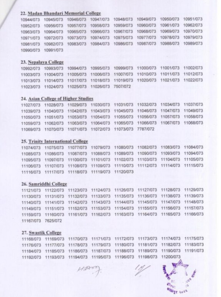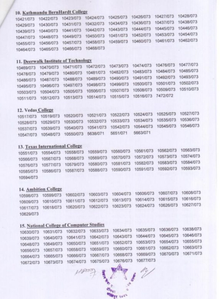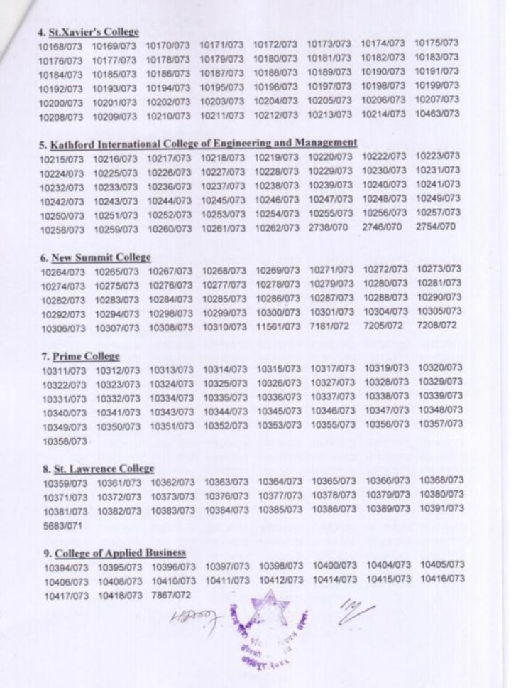 त्रिभुवन विश्वविद्यालय विज्ञान तथा प्रविधि अध्यन संस्थान डीनको कार्यालय परीक्षा शाखा क्रितिपुरद्वारा सेमेस्टर प्रणाली २०७८ साल भदौ/असोज महिनामा संचालन भएको चार बर्षे स्नातक तह कम्प्युटर विज्ञान तथा सूचना प्रविधि विषय चौथो वर्ष आठौँ सत्र २०७३- समुहको परीक्षाफल प्रकाशित गरेको छ ।
