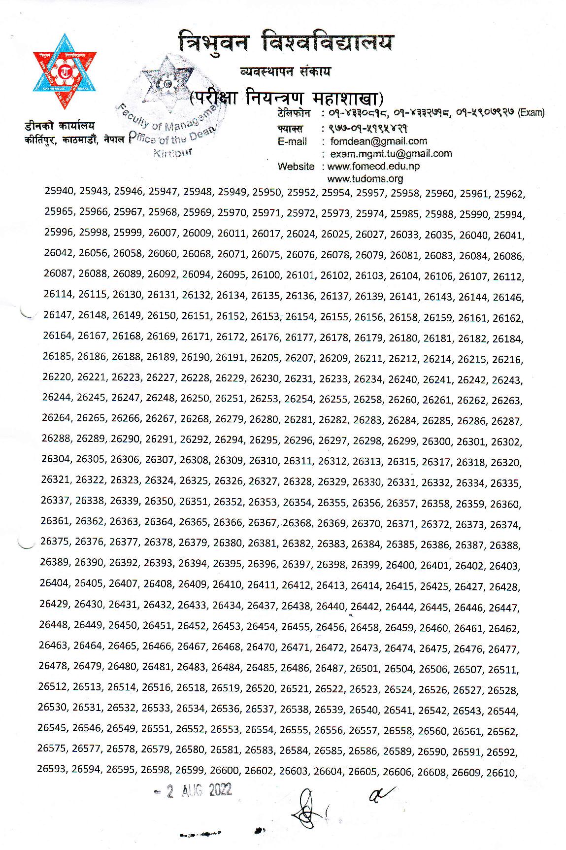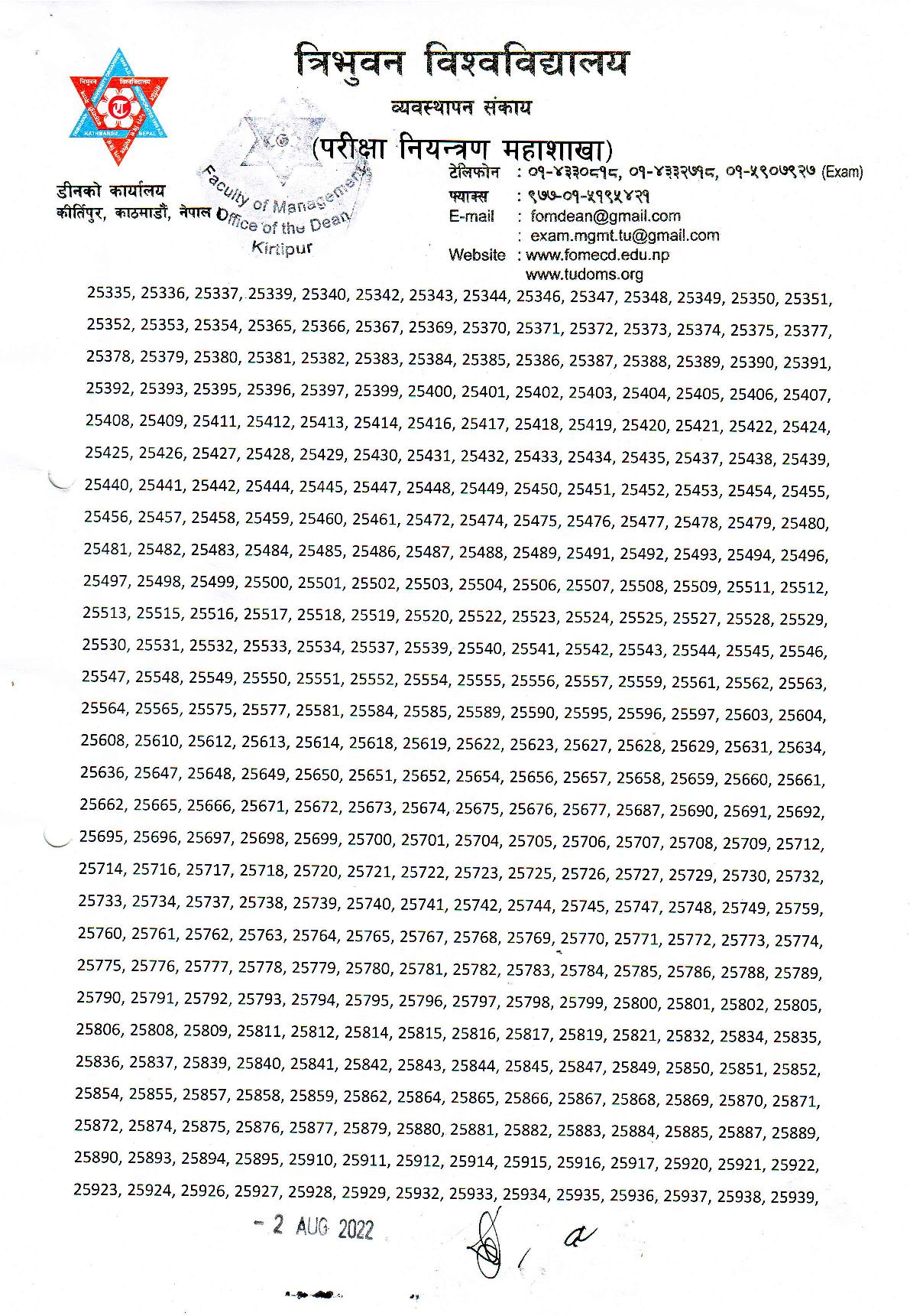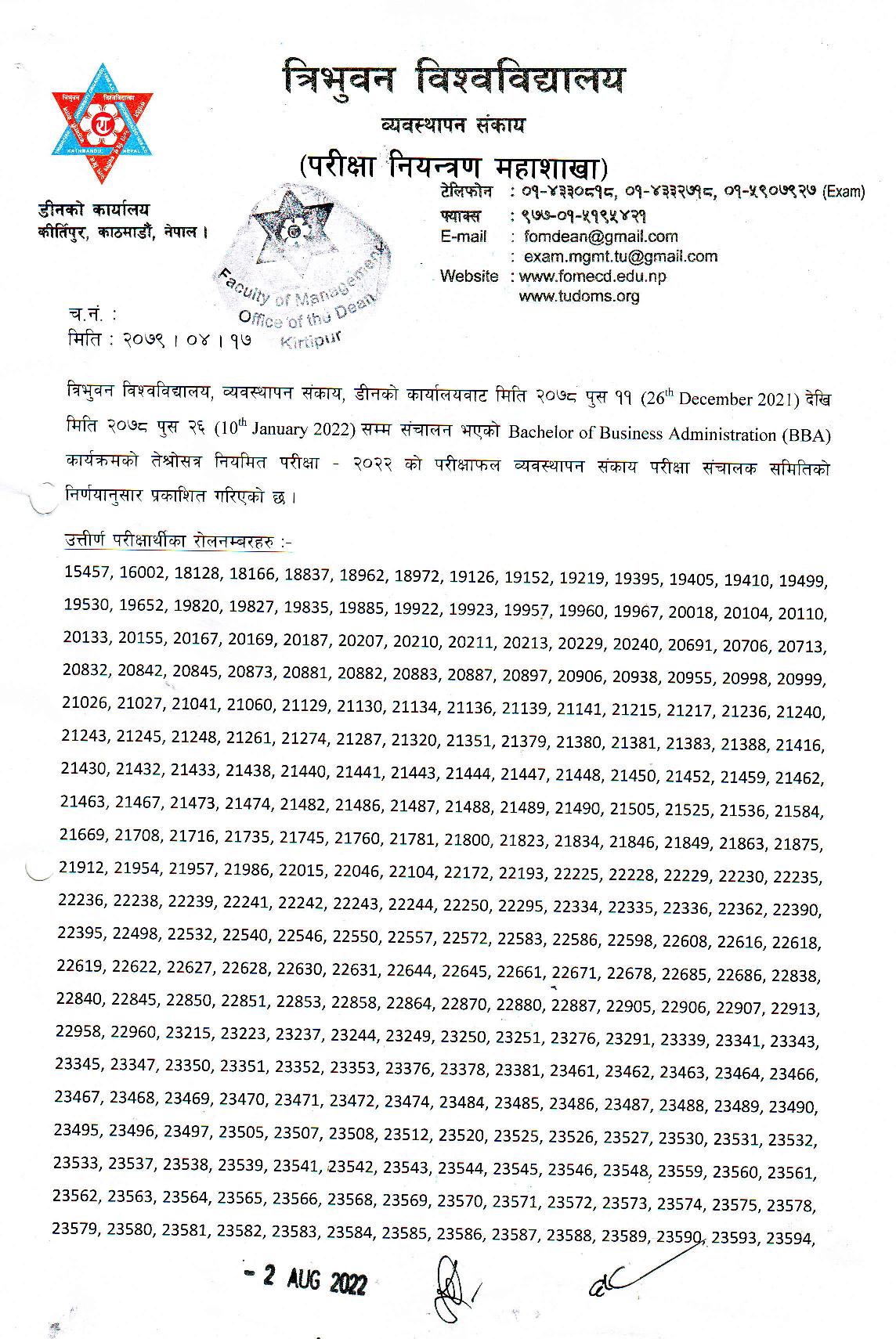 Bachelor of Business Administration (BBA) कार्यक्रमको तेस्रो सत्र नियमित २०२२ को परीक्षाफल व्यवस्थापन संकाय परीक्षा सञ्चालक समितिको निर्णयानुसार प्रकाशित गरिएको हो ।