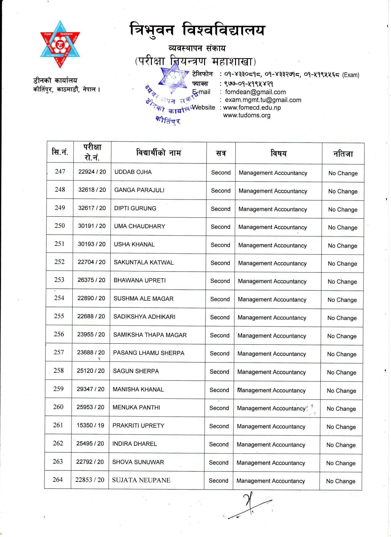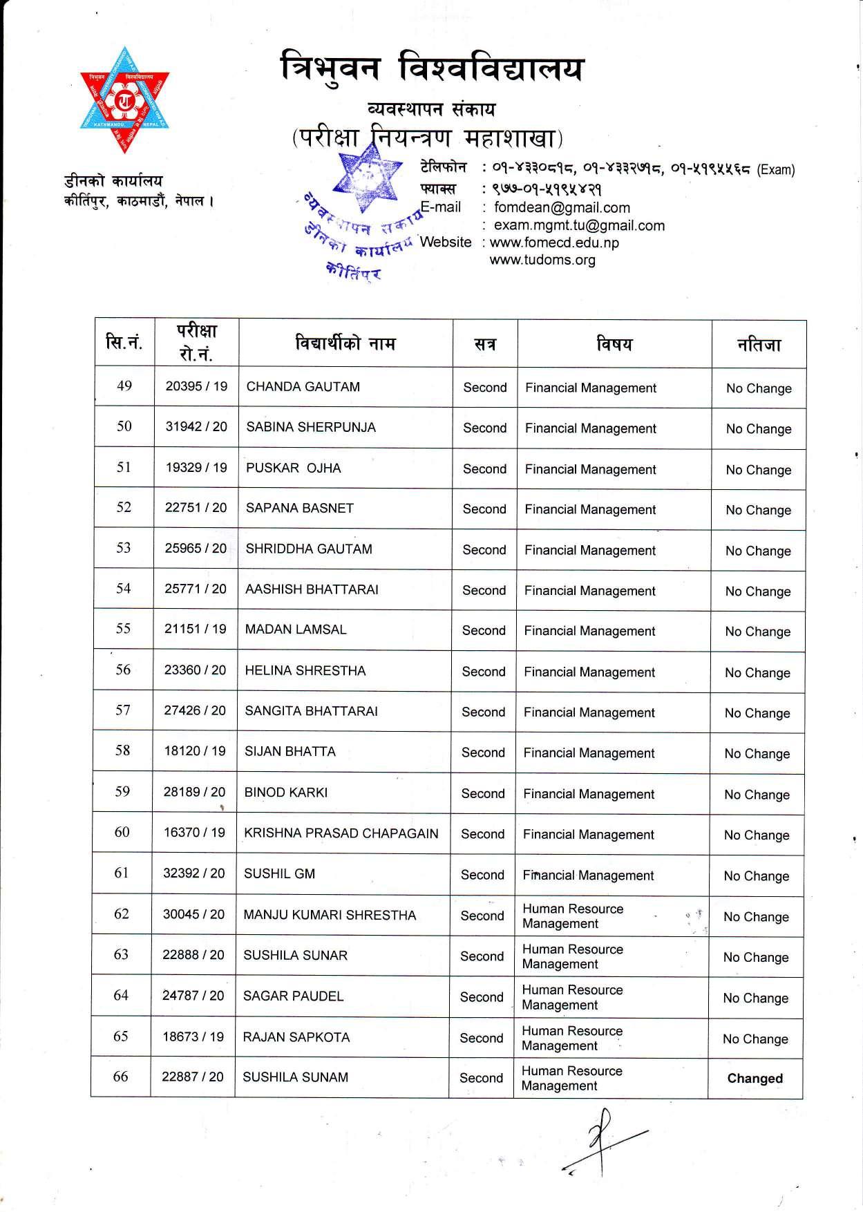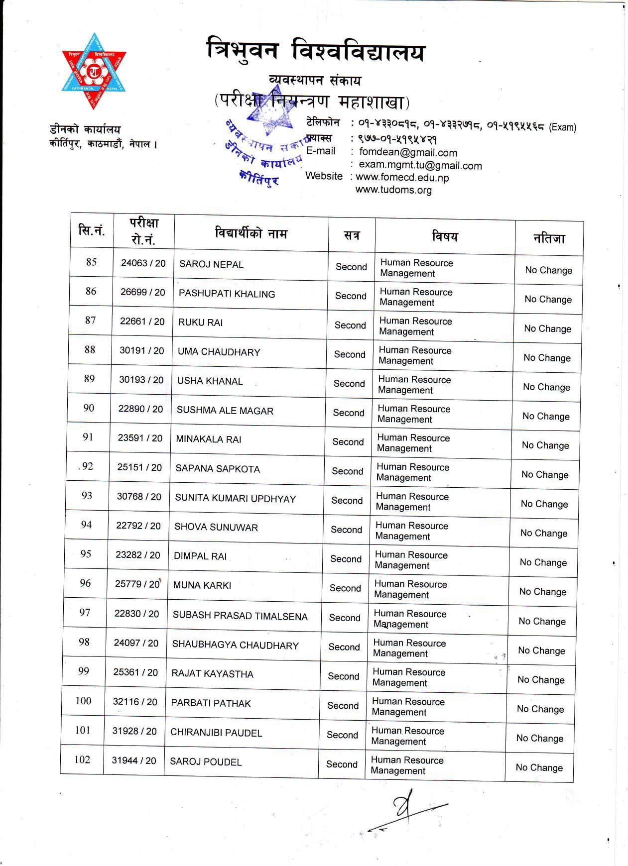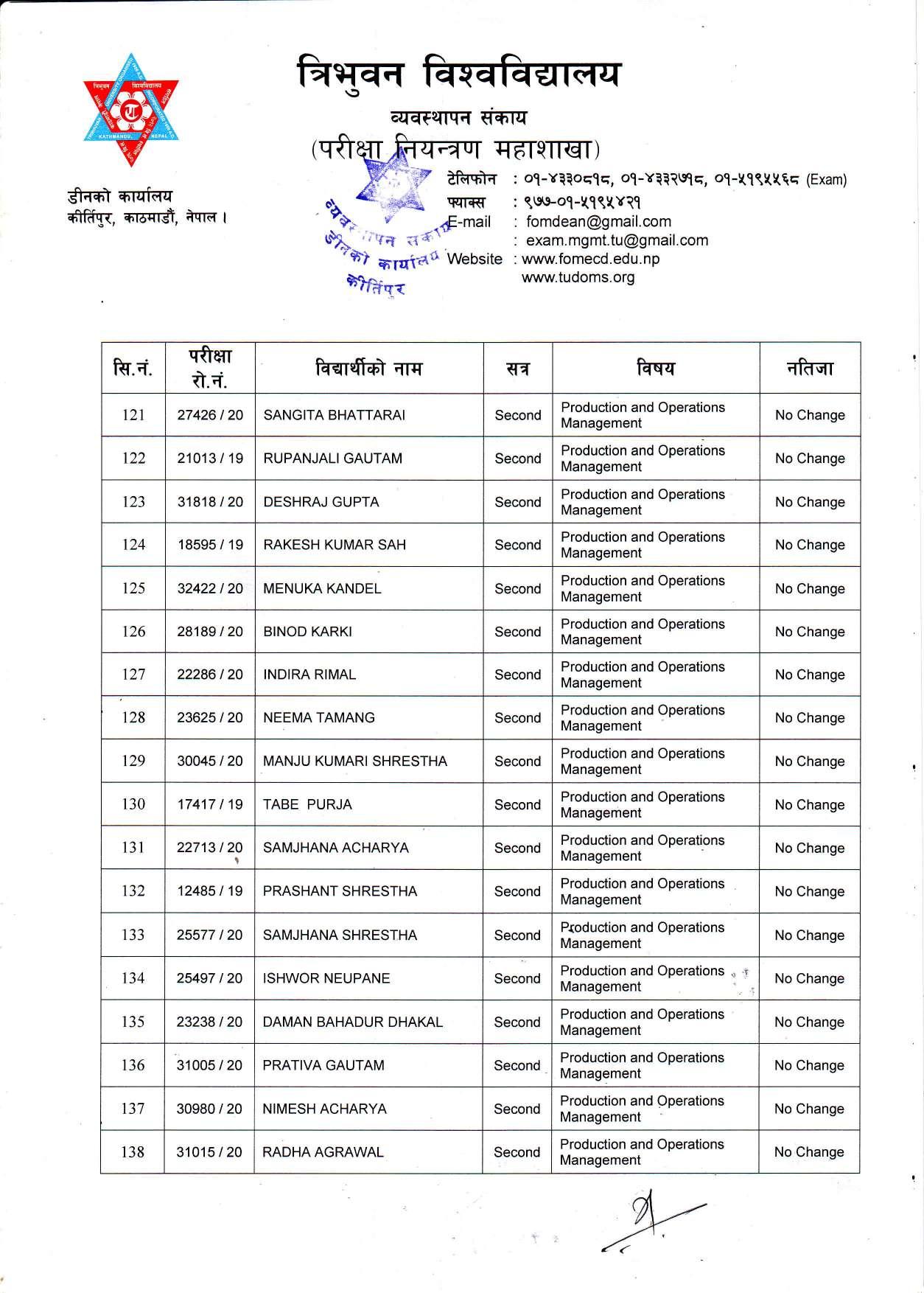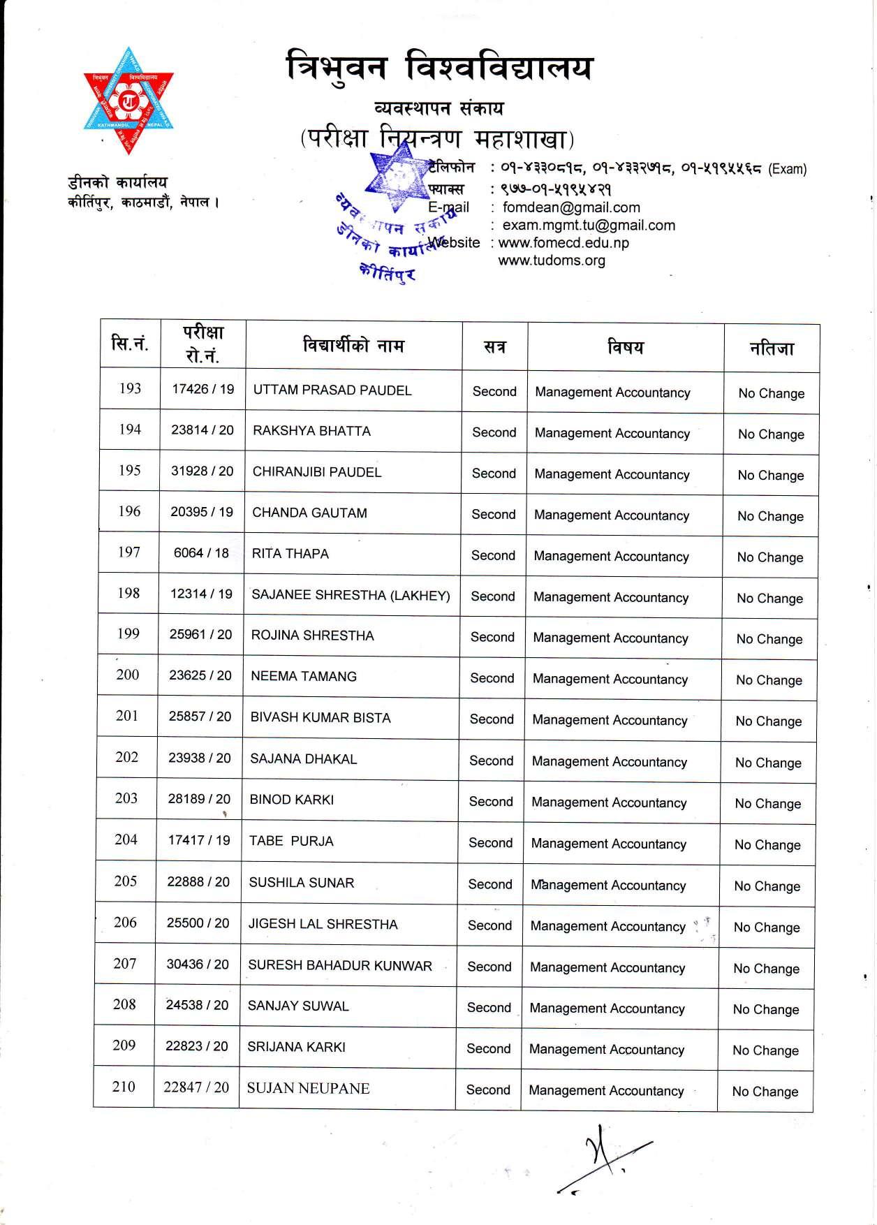 काठमाडौं । त्रिभुवन विश्वविद्यालयले स्नातक र स्नातकोत्तरका विभिन्न तीन वटा नतिजा एकसाथ प्रकाशित गरेको छ । प्रकाशित सम्पूर्ण नतिजा सबै तल अपलोड गरिएको छ ।