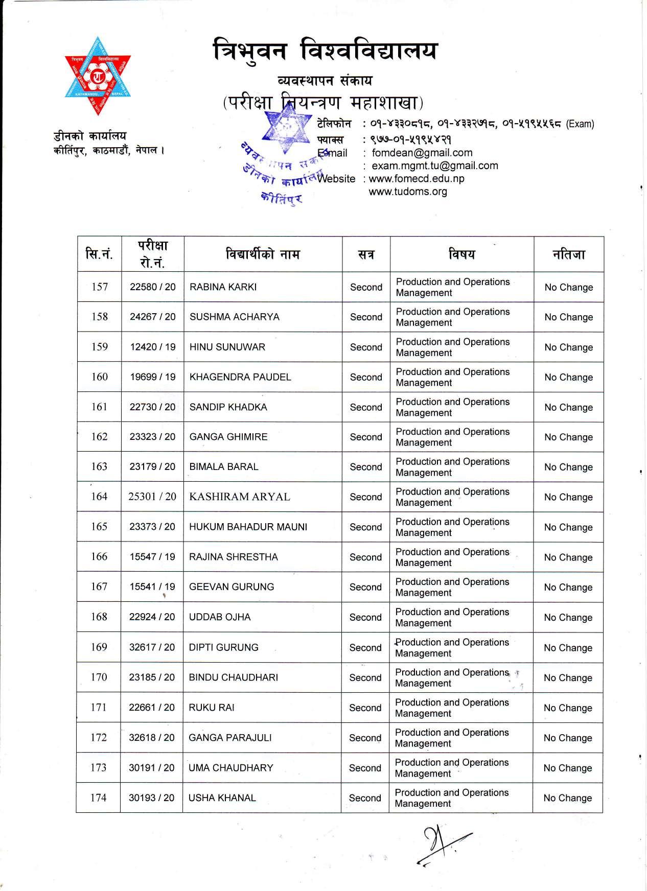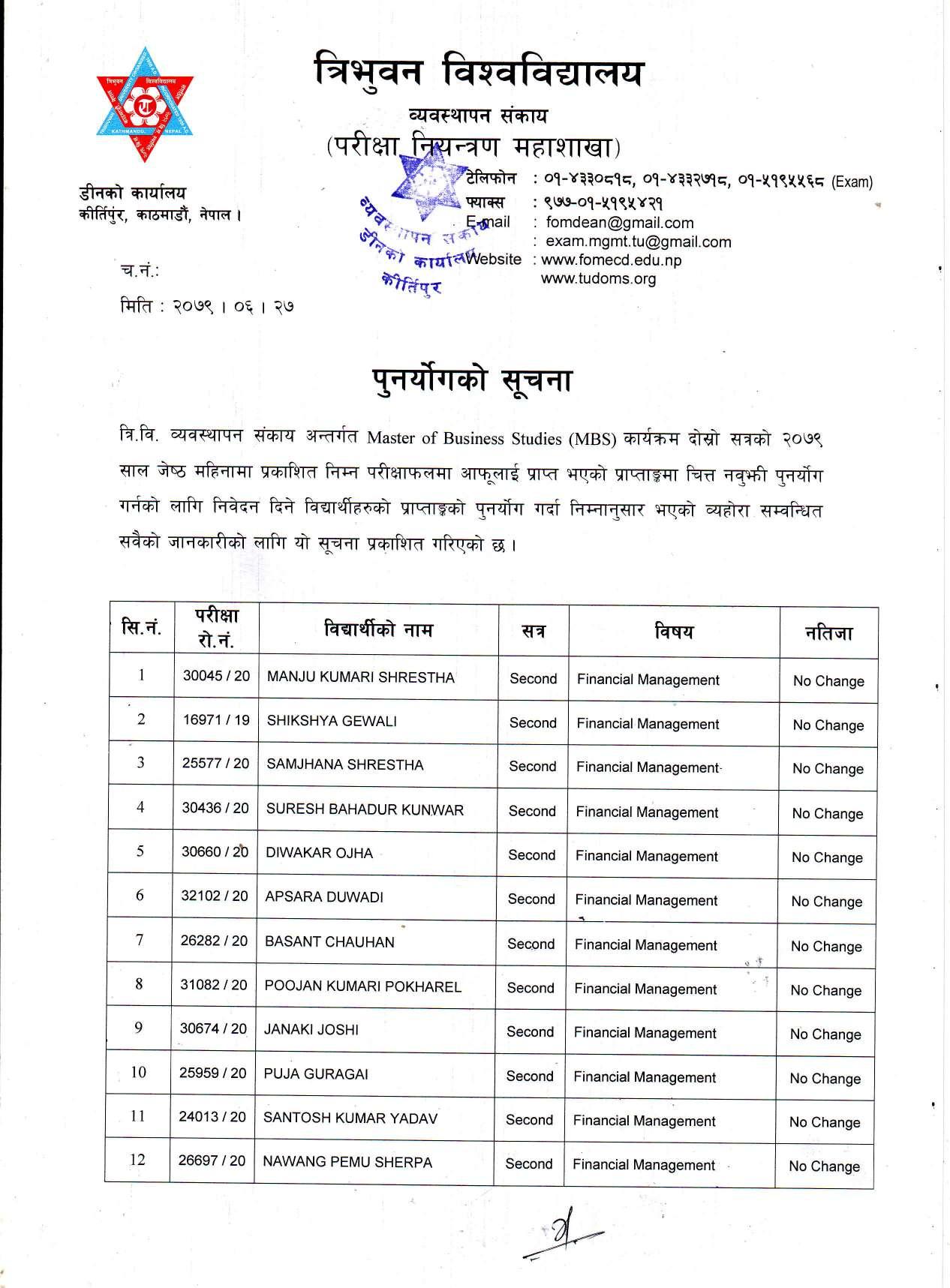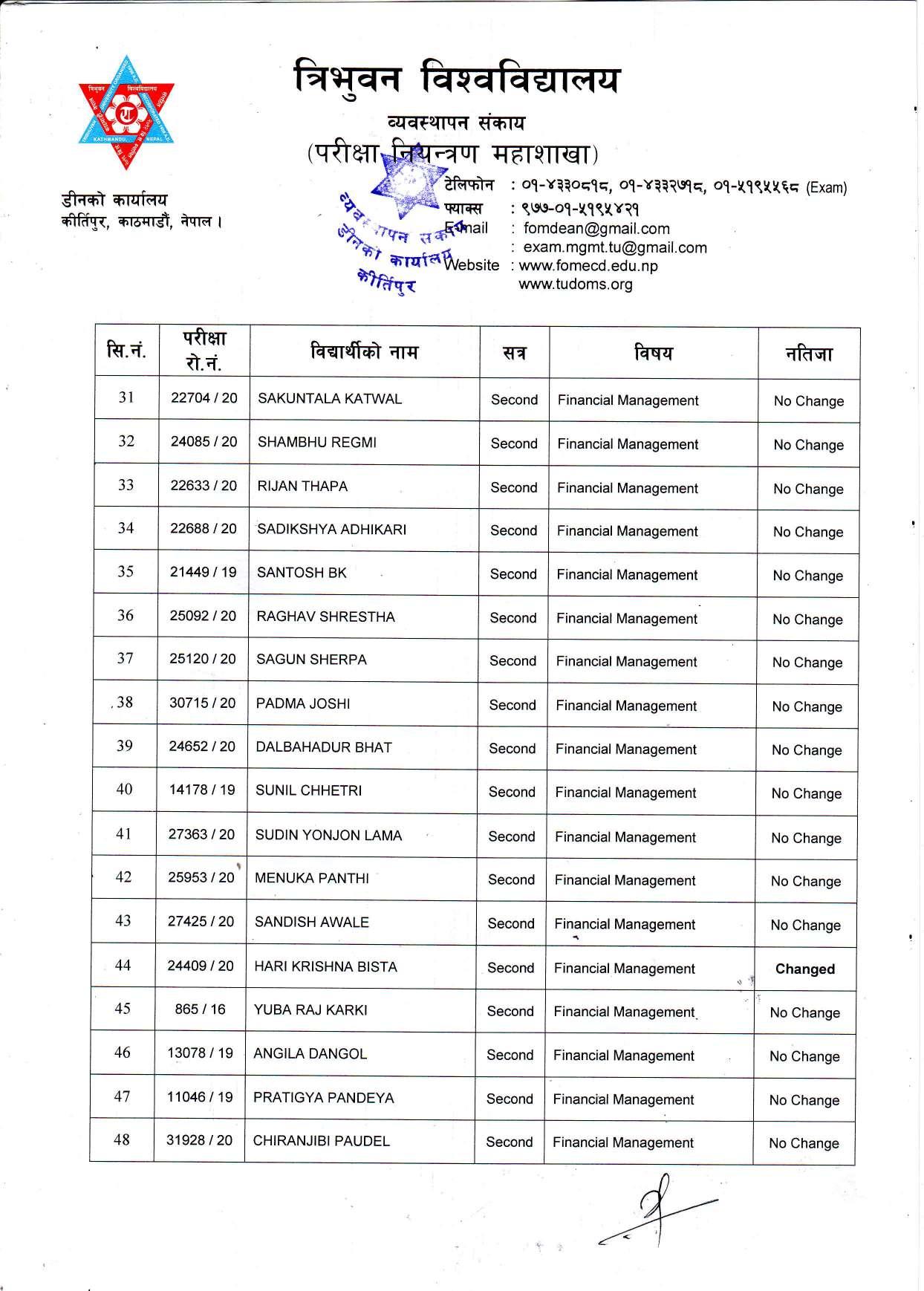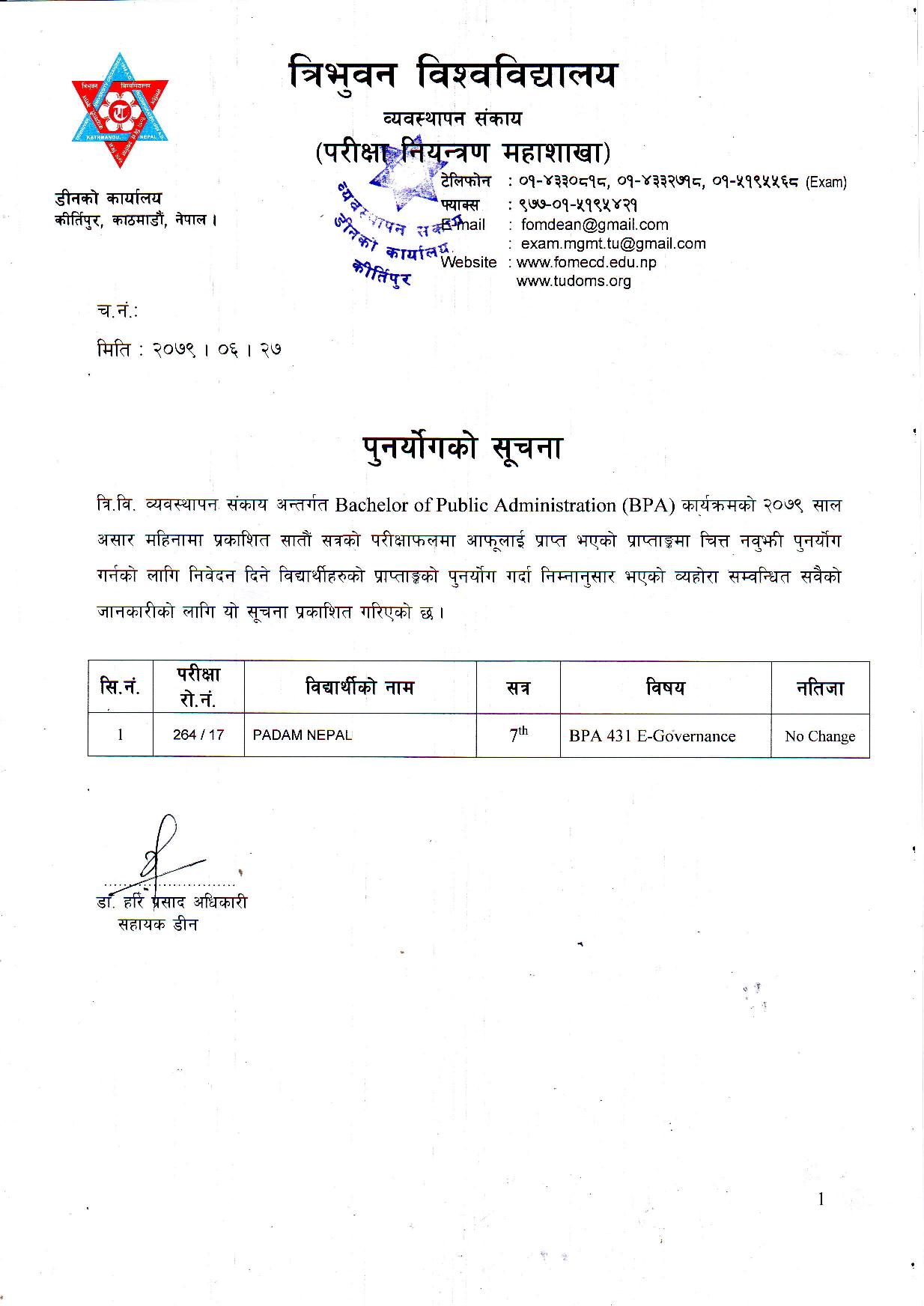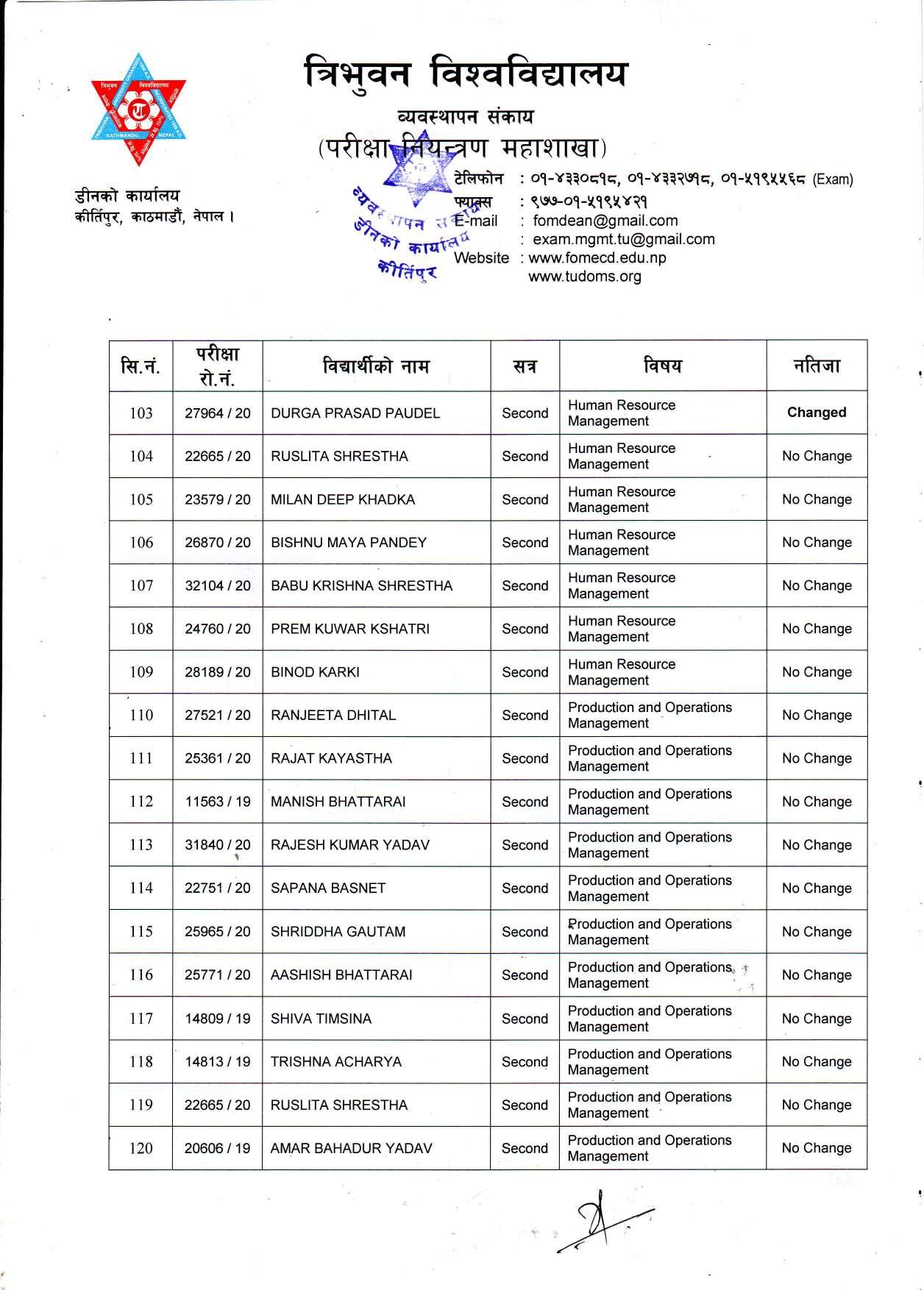 काठमाडौं । त्रिभुवन विश्वविद्यालयले स्नातक र स्नातकोत्तरका विभिन्न तीन वटा नतिजा एकसाथ प्रकाशित गरेको छ । प्रकाशित सम्पूर्ण नतिजा सबै तल अपलोड गरिएको छ ।