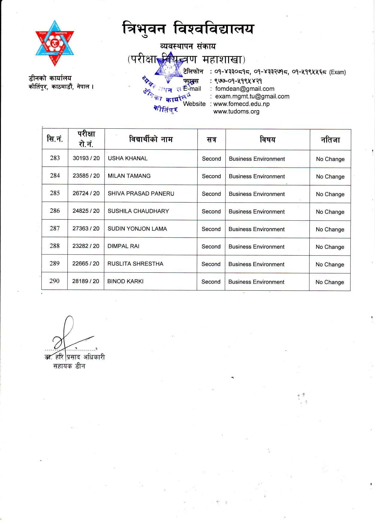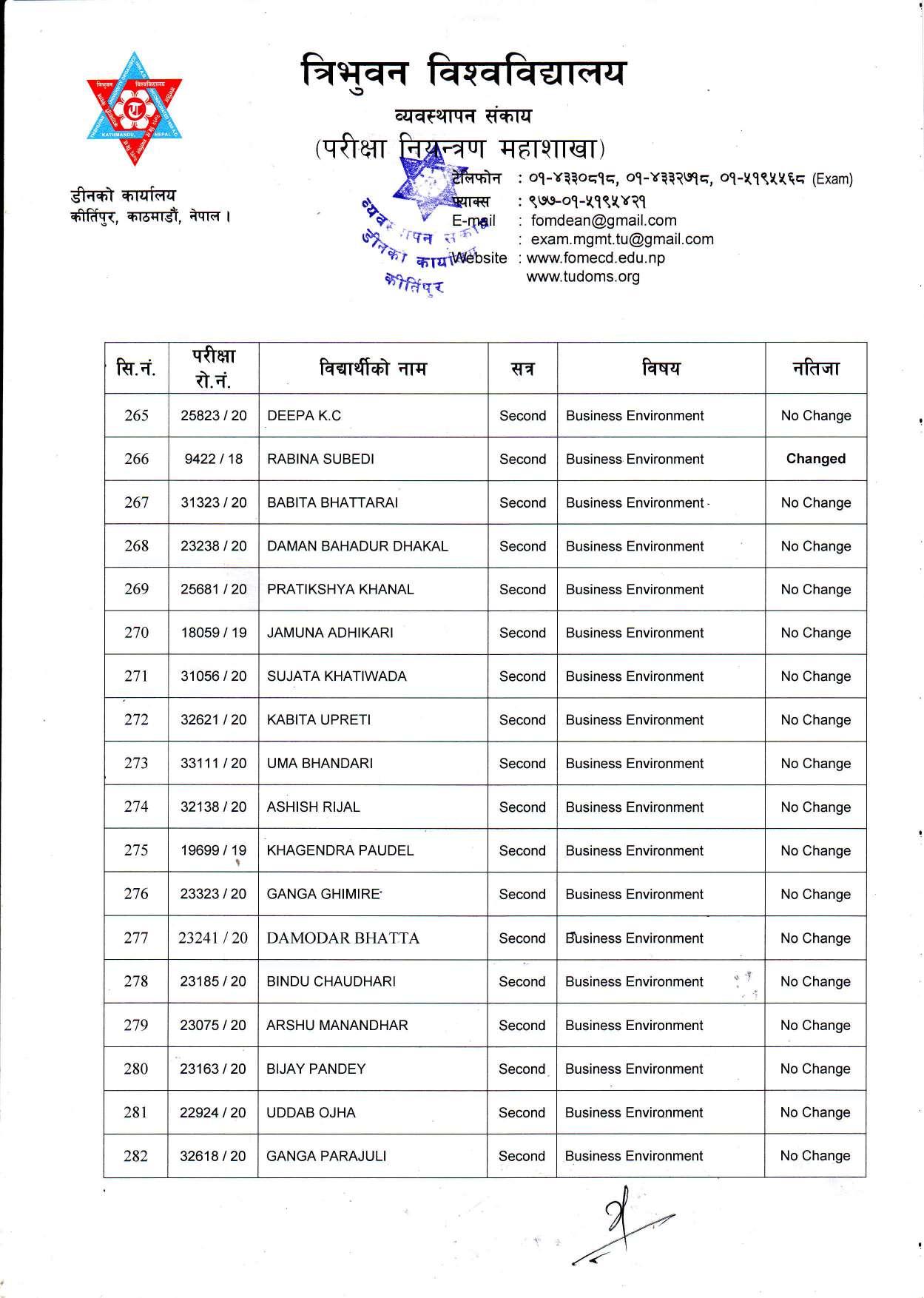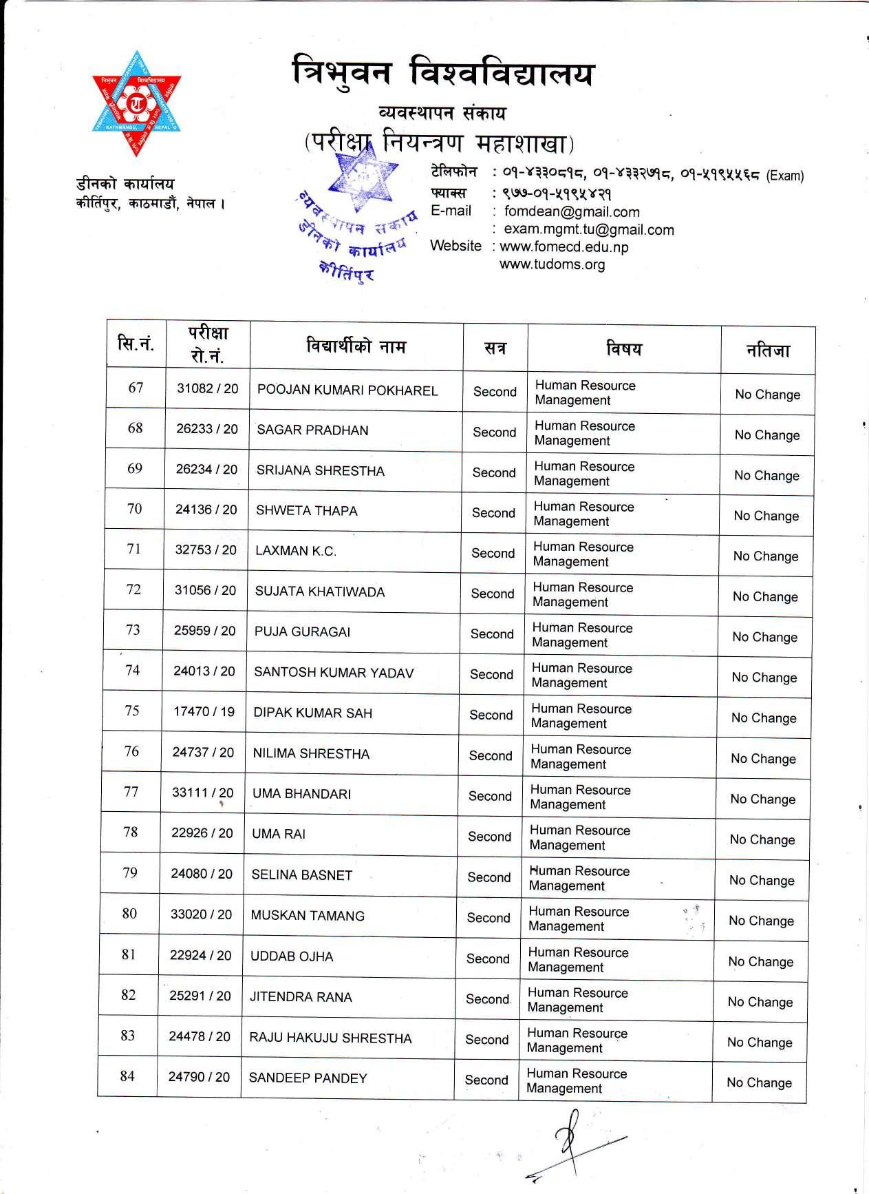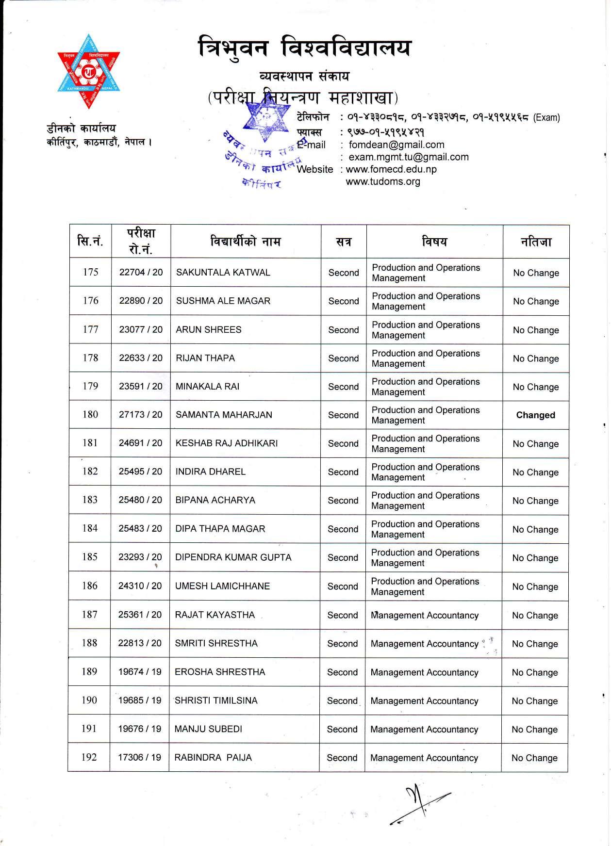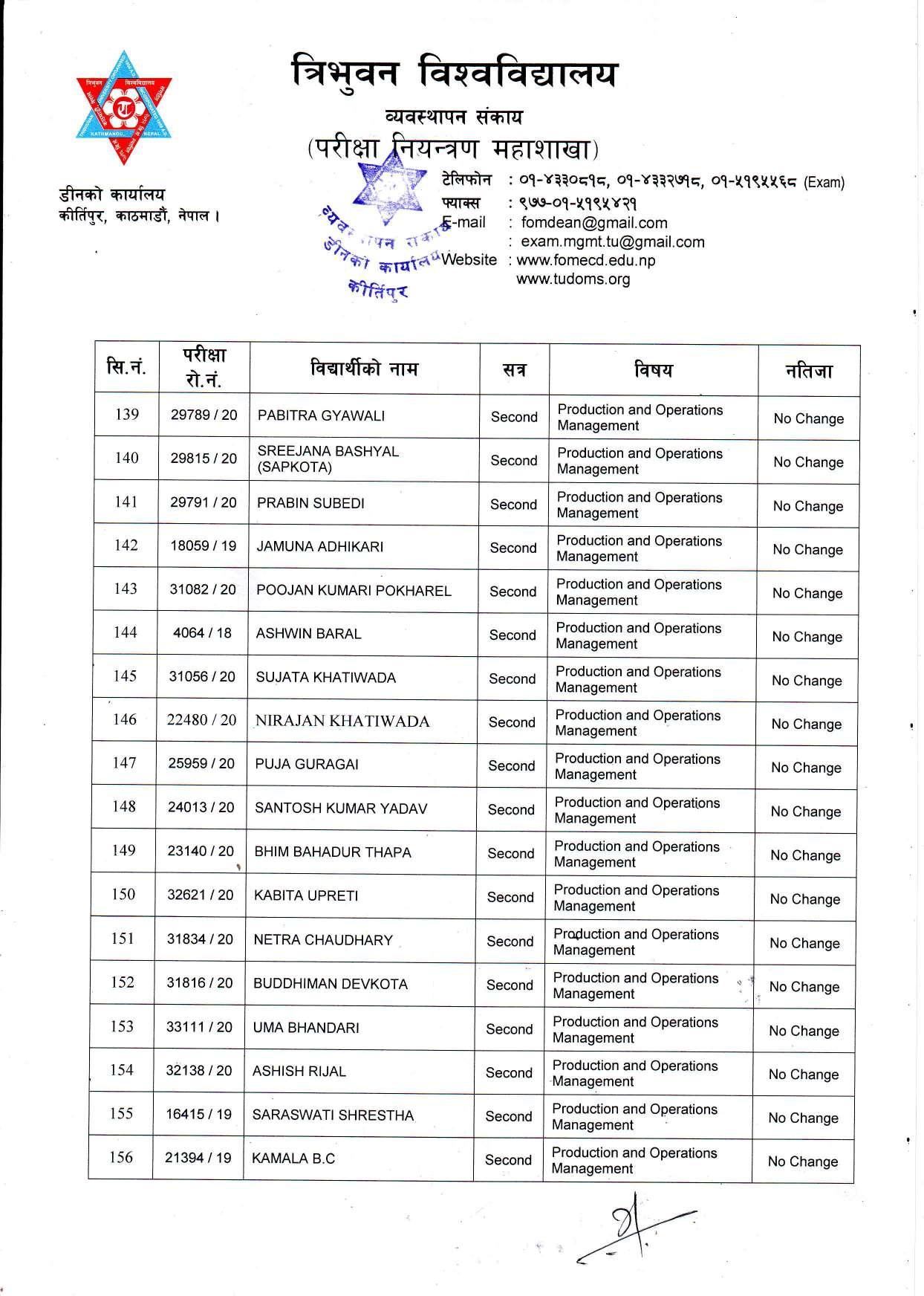 काठमाडौं । त्रिभुवन विश्वविद्यालयले स्नातक र स्नातकोत्तरका विभिन्न तीन वटा नतिजा एकसाथ प्रकाशित गरेको छ । प्रकाशित सम्पूर्ण नतिजा सबै तल अपलोड गरिएको छ ।