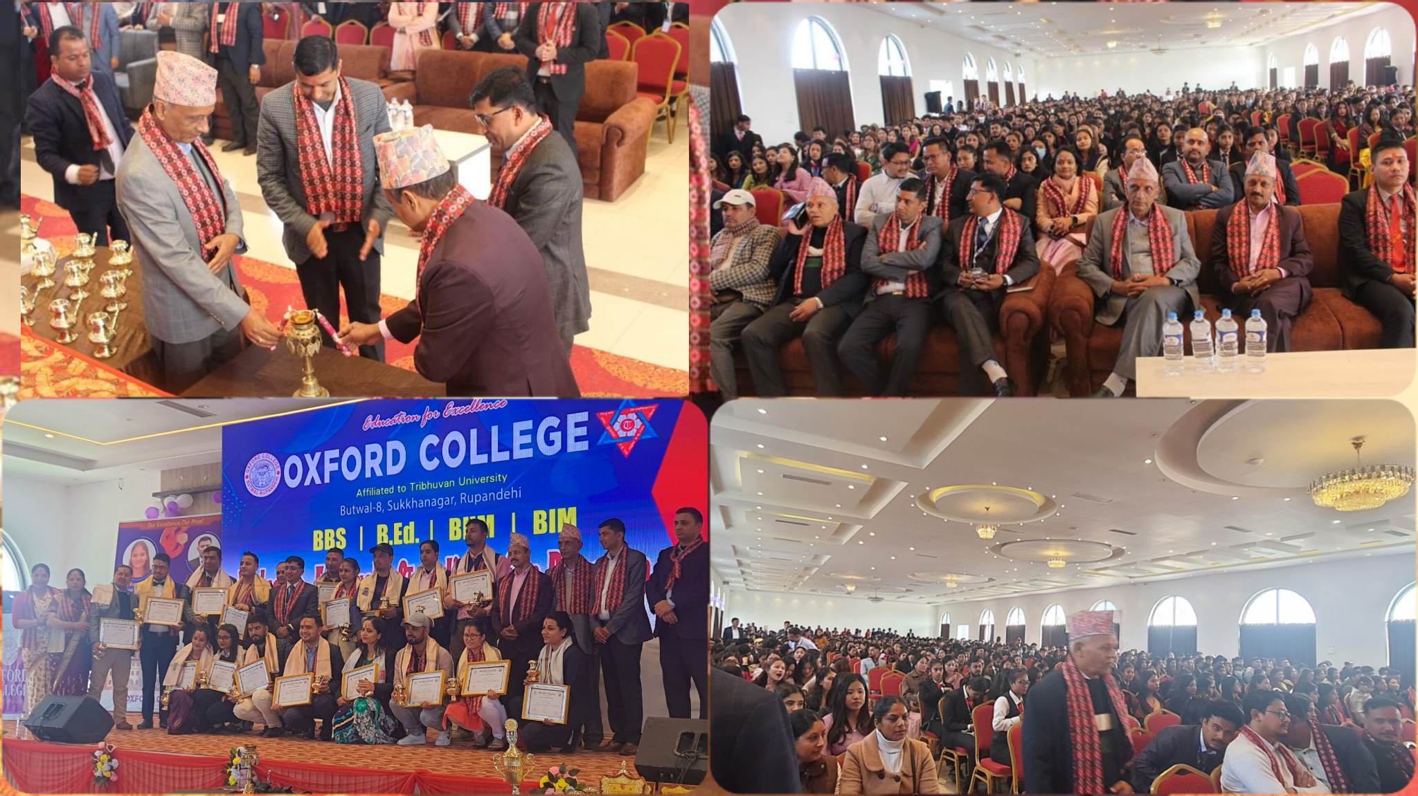 बुटवल, २ फाल्गुन । अक्सफोर्ड कलेज बुटवल उपमहानगरपालिका–८ सुख्खानगर, रुपन्देहीले स्वागत, सम्मान तथा विदाई कार्यक्रम गरेको छ । कलेजले बीबीएस, बी.एड. प्रथम वर्ष, बी.एच.एम., बी.आइ.एम. प्रथम सेमेष्टरका विद्यार्थीहरुलाई भैरहवामा मंगलबार एक कार्यक्रमकाबीच स्वागत, बी.बी.एस., बी.एड. चौथो वर्ष, बी.एच.एम., बी. आइ.एम. आठौं सेमेष्टरमा अध्ययनरत विद्यार्थीहरुलाई विदाई गरेको हो ।