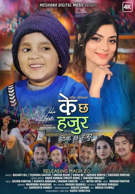 गायक सचिन परियारको “के छ हजुर” बोलको गीत मंगलबारबाट मेशना म्युजिक युटुब च्यान्नलबाट देशभर सार्बजनिक हुने भएको छ । सचिन परियार, अस्मिता अधिकारी, बिक्रम क्षेत्रीको आवाजमा नेत्र अर्यालको शब्दमा रोशन परियारको लय रहेको छ ।