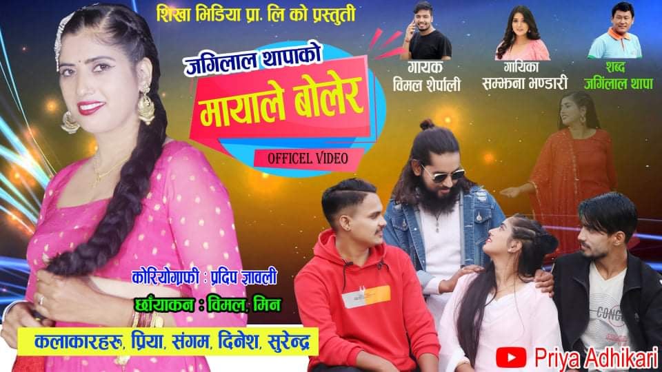 बुटवल । पछिल्ला दिनहरुमा हरेकदिन जसो धेरै गीतहरु सार्बजनिक हुदै आइरहेका छन् यसैक्रममा सञ्चारकर्मी प्रिया अधिकारीले पनि आफ्नो “मायाले बोलेर” बोलको म्युजिक भिडियो सार्वजनिक गरेकी छन् । म्युजिक भिडियोमा जगिलाल थापा जेल संर्घषको शब्द , बिमल शेर्पाली र सम्झना भण्डारीको स्वर रहेको छ । गीतमा सञ्चारकर्मी प्रिया अधिकारी, संगम पौड्याल, दिनेश पन्थी र सुरेन्द्र न्यौपानेले अभिनय गरेका छन् ।