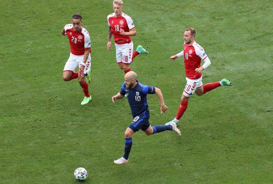 डेनमार्कको कोपनहेगनमा जारी खेलमा डेनमार्कका क्रिस्टियन एरिक्सन अचेत भएर मैदान ढलेपछि खेल रोकिएको थियो । खेलको ४३ औं मिनेटमा एरिक्सन अचेत भएका थिए ।