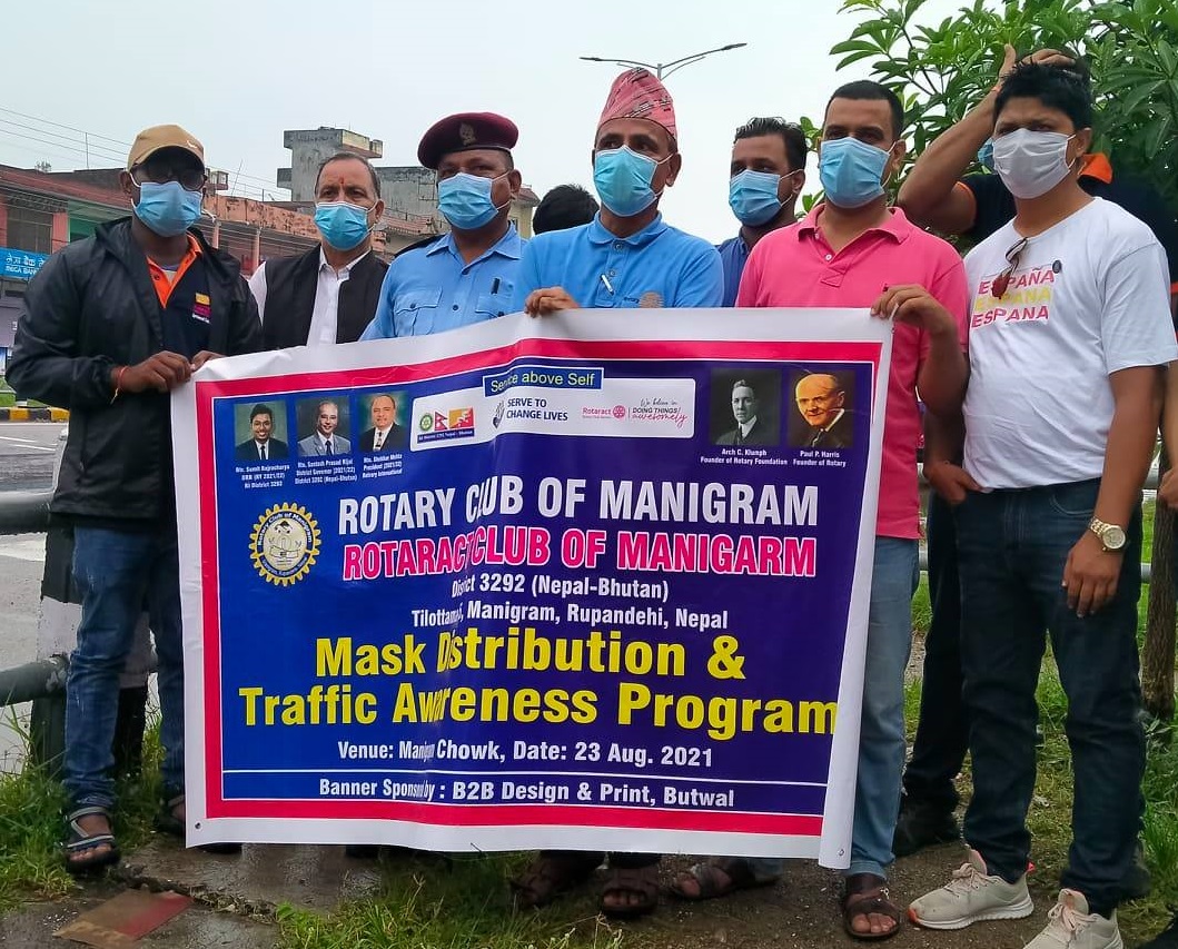 रोटरी क्लब र रोट्रयाक क्लब अफ मणिग्रामको संयुक्त मास्क वितरण तथा ट्राफिक सचेतना कार्यक्रम सम्पन्न