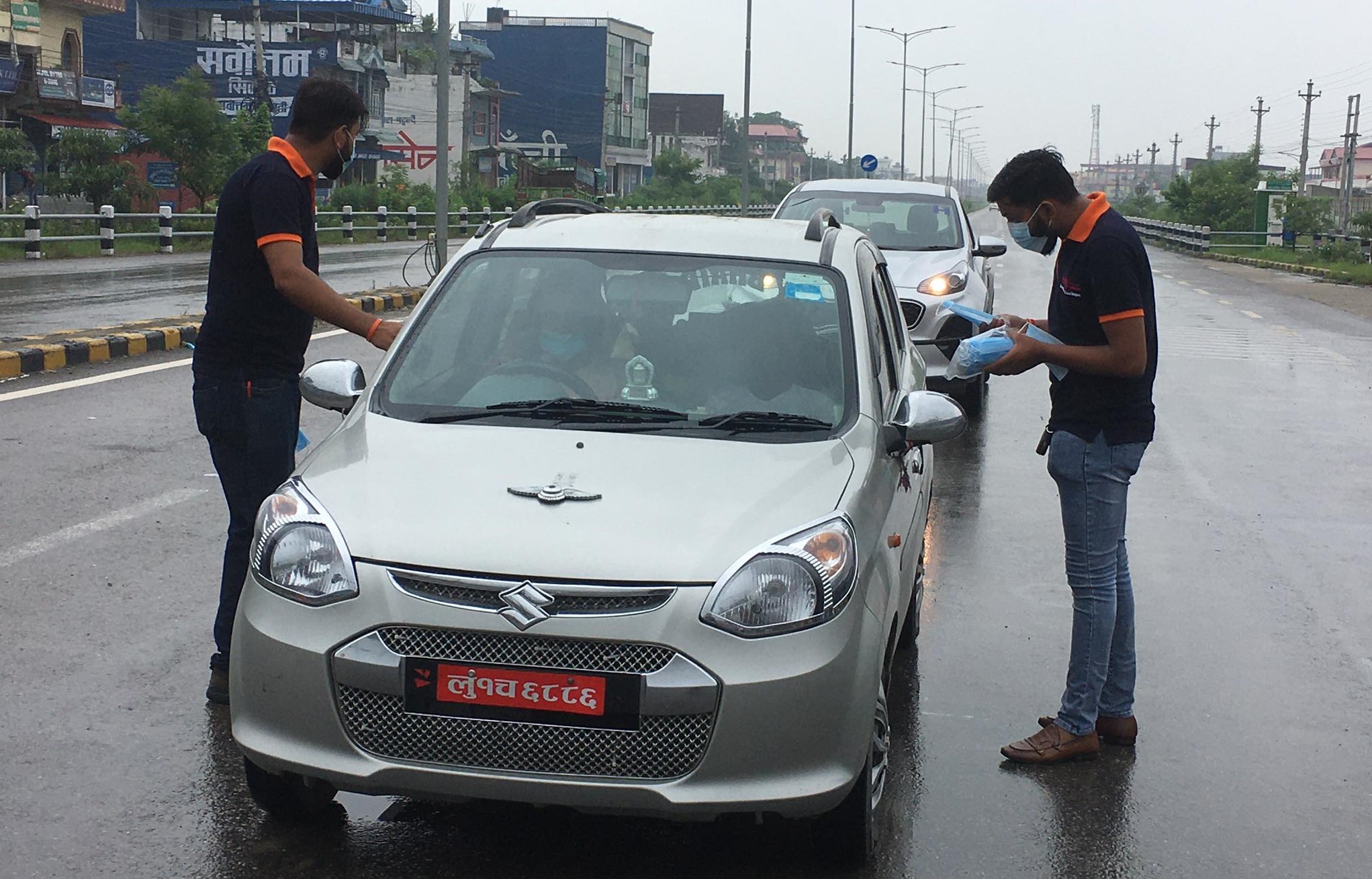 मणिग्राम, ७ भदौ । रोटरी क्लब अफ मणिग्राम र रोट्रयाक क्लब अफ मणिग्रामको संयुक्त रुपमा आयोजनामा मास्क वितरण तथा ट्राफिक सचेतना कार्यक्रम सम्पन्न भएको छ । रुपन्देहीको मणिग्राम चोकमा सम्पन्न उक्त कार्यक्रममा रोटरी क्लब अफ मणिग्रामका अध्यक्ष केशवप्रसाद न्यौपाने र रोट्र्याक क्लब अफ मणिग्रामका अध्यक्ष निराजन अर्यालले अहिले केही मानिसहरुले कोरोना विरुद्धको खोप लगाइ सके पनि हेलचेक्क्रईले गर्दा दिनानु दिन कोरोना बढ्दै गएको बताएका थिए ।