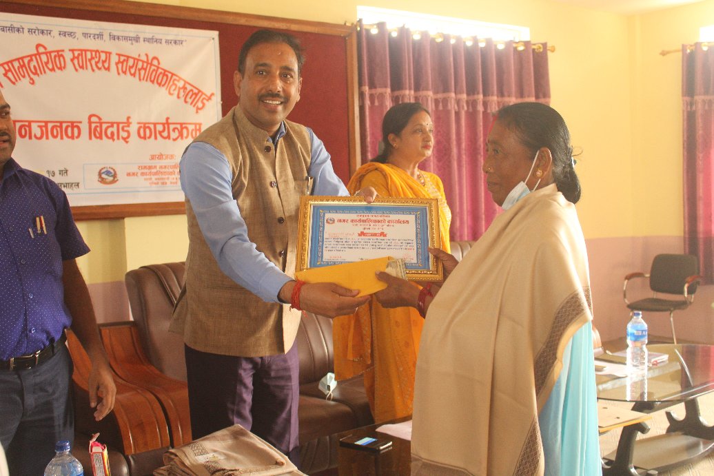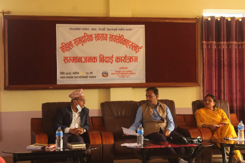 गृहपृष्ठ रामग्रामद्धारा स्वास्थ्य स्वयंसेवीकाहरुलाई ५० हजार नगद सहित सम्मानजनक बिदाई