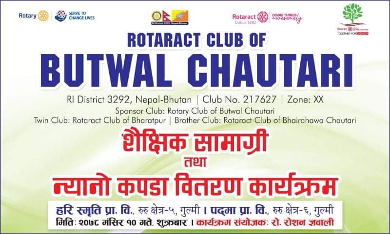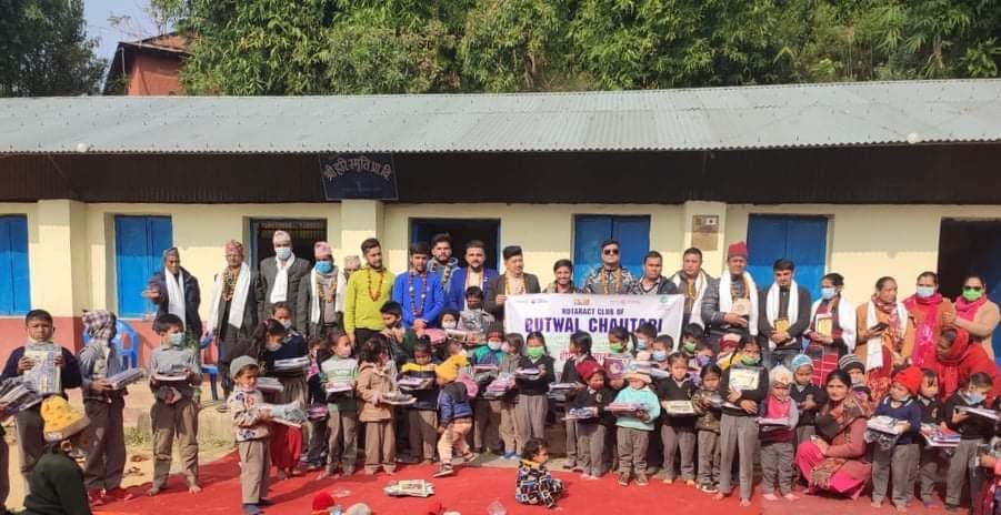 रोट्रयाक क्लब अफ बुटवल चौतारीले गर्यो शैक्षिक सामाग्री तथा न्यानो कपडा वितरण कार्यक्रम