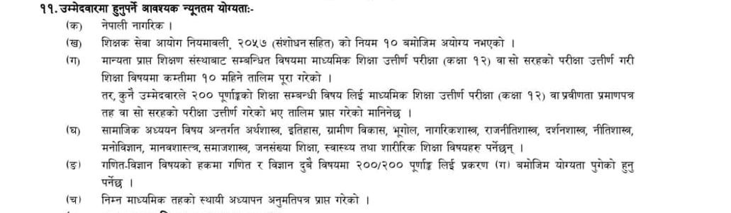 शिक्षक सेवा आयोगको निमाविको फारम भर्न १२ पास हुनुपर्ने अरु के के चाहिन्छ!