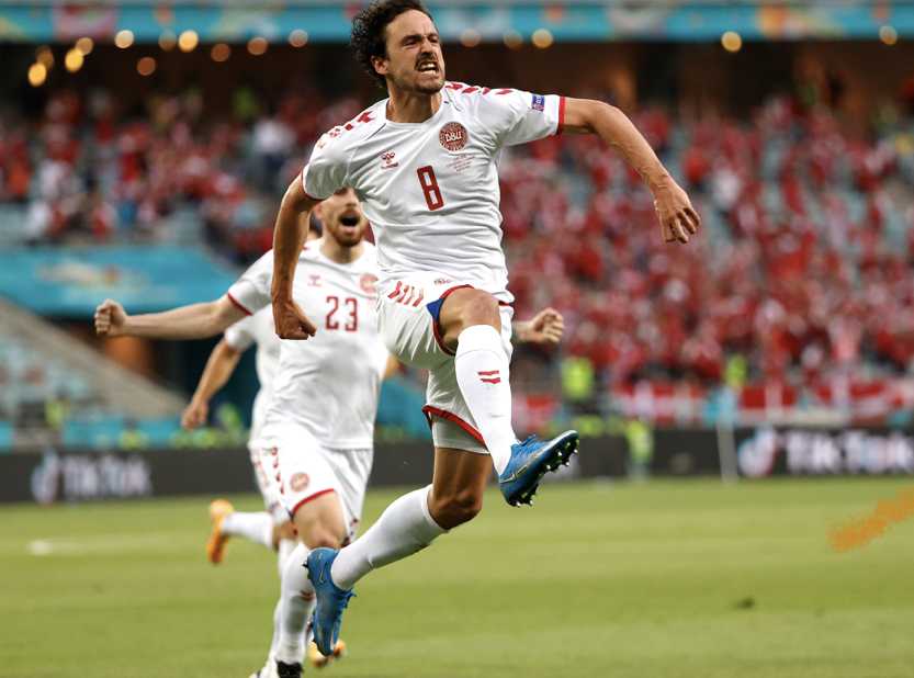 डेनमार्कलाई जित दिलाउन थोमस डेलाने र कास्पर डोलवर्गले एक एक गोल गरे ।