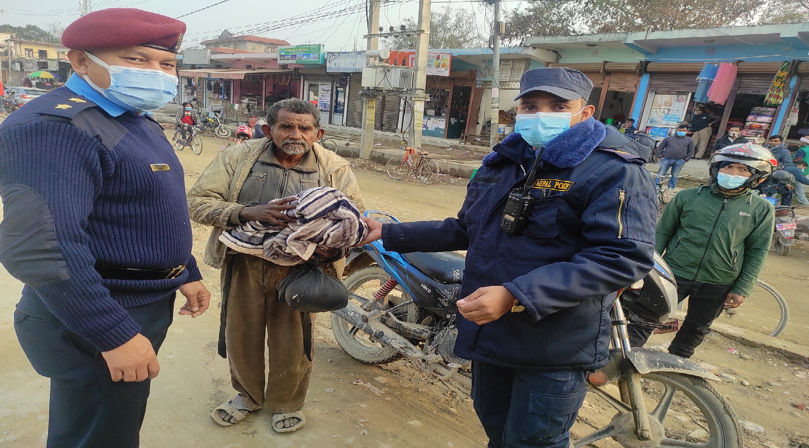 कपिलवस्तुको विभिन्न क्षेत्रमा दैनिक जीवन यापनमा जाडोले कठ्याङग्रिएका नागरिकलाई प्रहरीले देखिरहेको थियो तर मानविय सहयोग समेत गर्न नपाएको अवस्थामा प्रहरीले आफ्नो दैनिक ड्युटिका क्रममा देखेका नागरिकलाई आफ्नै सिफारिसमा कार्यालयमार्फत जिल्ला प्रशासन कार्यालयमा पुर्याएपछि प्रशासन कार्यालयले खरिद गरि प्रहरीकै हातबाट वितरण गराएको हो ।