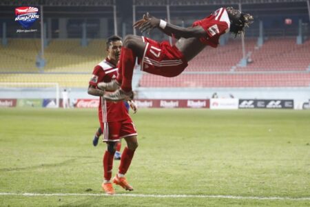 त्रिपुरेश्वरस्थित दशरथ रंगशालामा काठमाडौंलाई जित दिलाउन मेसौके ओलोमोउ र संजोक राईले एक एक गोल गरे ।