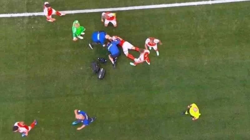 खेलको ४३ औं मिनेटमा एरिक्सन बेहोस भएर मैदानमा ढल्न पुगेका थिए ।
