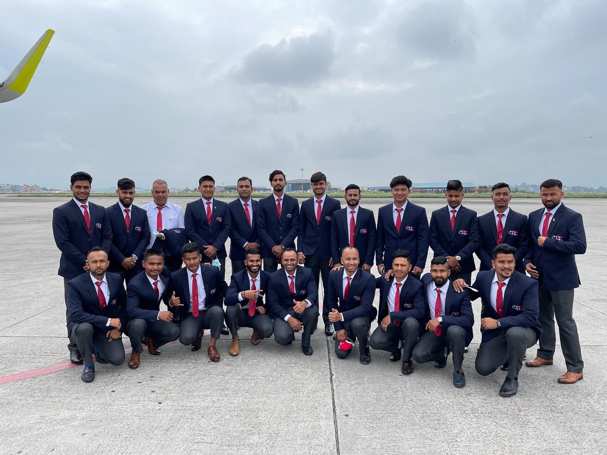 नेपाल क्रिकेट संघ (क्यान) ले नेपाली टिम बिहान ८ बजे सलाम एयरबाट ओमान प्रस्थान गरेको जनाएको छ । १७ खेलाडीसहित २२ सदस्यीय टिम ओमान गएका छन् ।